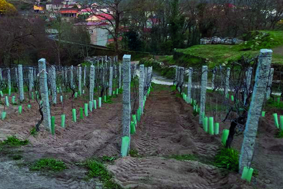 Los cabeceros de los postes son de piedra, excepto en la plantación de viñas viejas donde todos los postes son de madera de buen diámetro. Nos gusta la piedra y luego la madera, por tanto, en la medida que podamos iremos avanzando en esta dirección. La robustez, presencia y algún intangible que le transmite a la uva, hace de los postes de piedra una seña de identidad de nuestras comarcas vinícolas en Galicia.